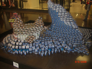 The next day I shopped 'til I dropped at NorthPark Mall which is a very beautiful place and paid a visit at Neiman on Main St. where I added Pradas to my small shoe collection. NorthPark Mall always has ongoing art exhibitions and this time it was sculptures out of cans. This one called 'chicken of the sea'...like the tuna.